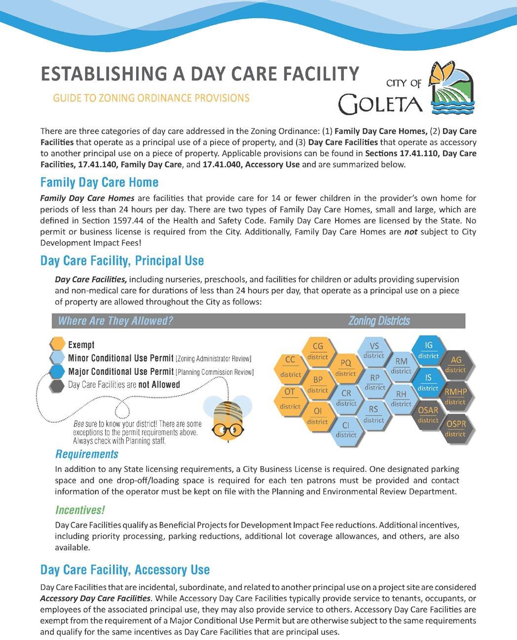 a. Guide child care and preschool operators through city and county permitting, planning, and zoning processes.