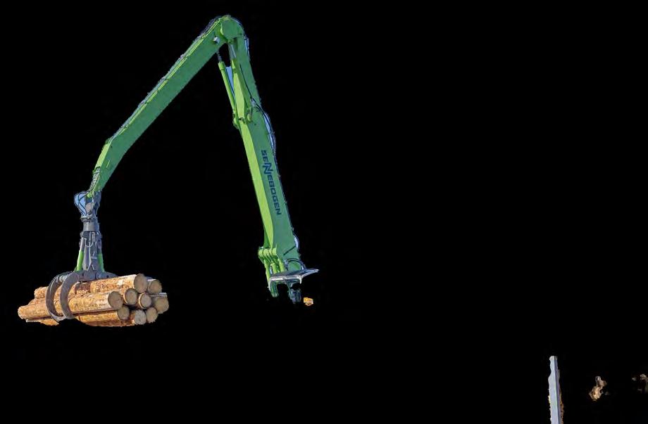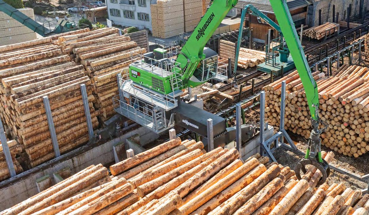 114 | Sennebogen | Ein 835 G wird als Portalkran im Schweizer Sägewerk Blumer Lehmann eingesetzt und steigert Produktivität