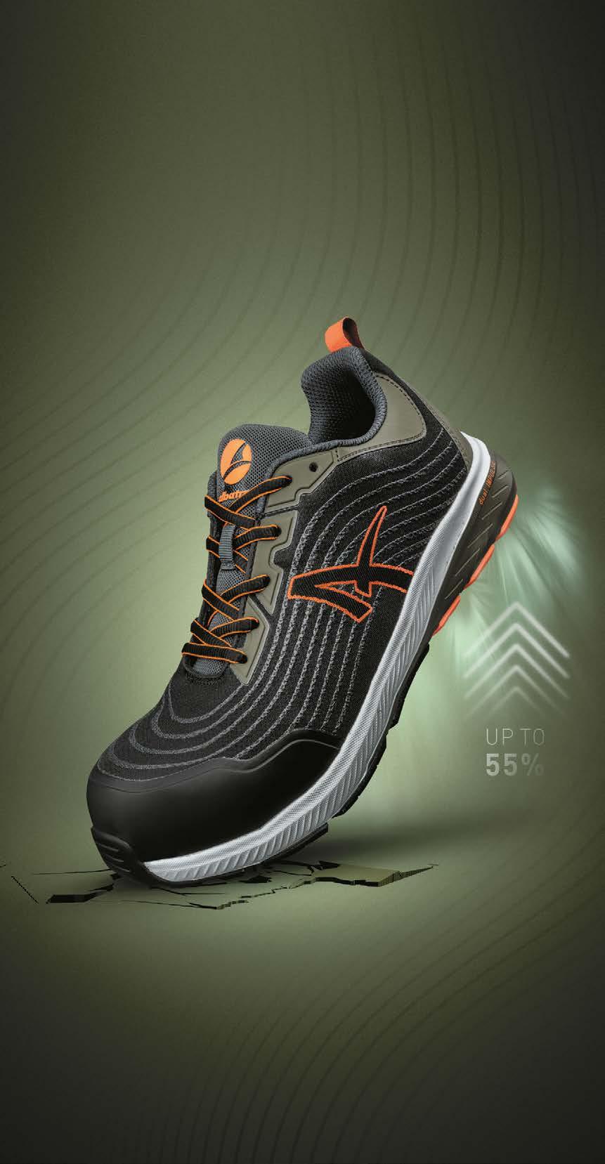 o unterschiedlich die einzelnen Gewerke auf dem Bau auch sind – eine Gemeinsamkeit haben sie alle: Die Persönliche Schutzausrüstung (PSA), zu der auch Sicherheitsschuhe zählen, ist essenziell. Wie wichtig ein guter Fußschutz ist, zeigt der aktuelle Bericht der Deutschen Gesetzlichen Unfallversicherung (DGUV) zum Arbeitsunfallgeschehen 2022: Hier machen Fußverletzungen 18,9 Prozent der meldepflichtigen Arbeitsunfälle aus – fast jeder fünfte Unfall betrifft also die Füße. Als alltägliche Begleiter im Job müssen Sicherheitsschuhe aber weitaus mehr leisten, als die Füße nur zu schützen. Beschäftigte auf dem Bau tragen ihre Sicherheitsschuhe an einem Arbeitstag schließlich in der Regel länger als ihre Freizeitschuhe. Folglich müssen die Schuhe sehr bequem sein und optimal passen. Nur so können sich die Träger wohl in ihren Schuhen fühlen, und sie nehmen ihren Fußschutz an einem langen Arbeitstag nicht als Belastung wahr.