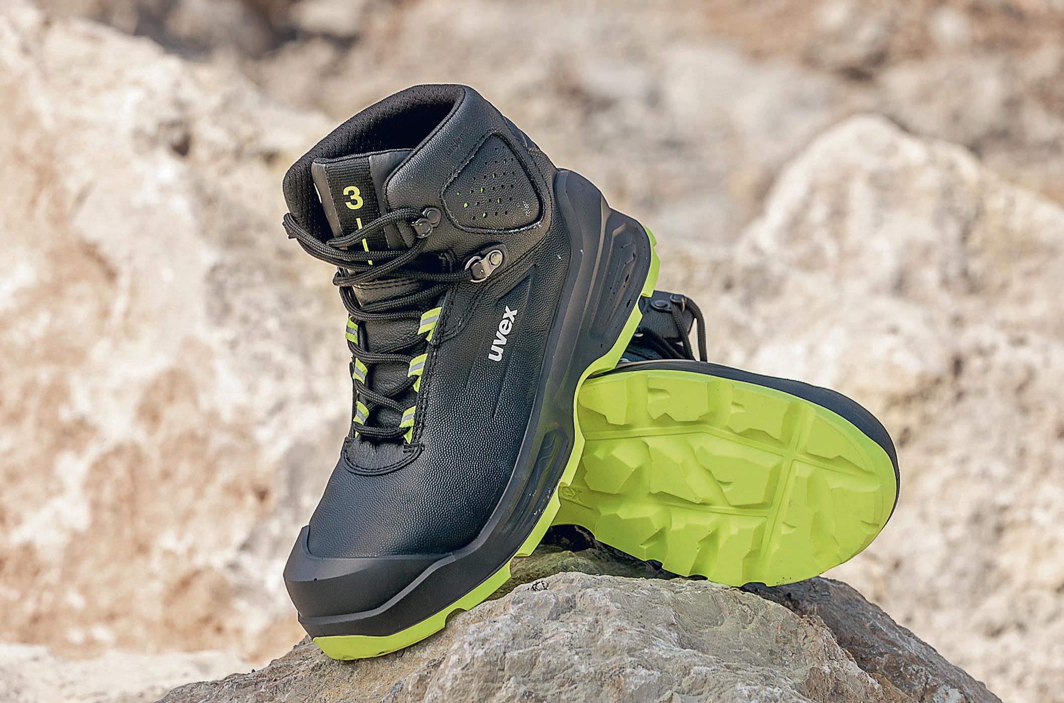 mit dem grobstolligen Profil, das über selbstrei nigende Eigenschaften verfügt, könne so auch über längere Zeiträume hinweg ein angeneh mes Tragegefühl gewährleistet werden. Zusätz lich schützt der Schuh vor eindringender Nässe und sorgt so nochmals für hohen Komfort: Die spezielle »uvex waterstop«-Technologie verleiht dem »uvex 3« viermal höhere Werte, als von der Wasserdurchtritts- und aufnahme-Prüfung vor gegeben, so Uvex. Zudem bietet der Sicher heitsschuh auch auf nassen Untergründen eine optimale Rutschhemmung, sodass das Risiko für Rutschunfälle effektiv minimiert werden kann. Neben der Sohle bietet außerdem der spezielle Schaum im »uvex anklepro« zusätzliche Sicher heit, indem er den Träger vor schmerzhaften Stoßeinwir kungen im Knöchelbereich schützt