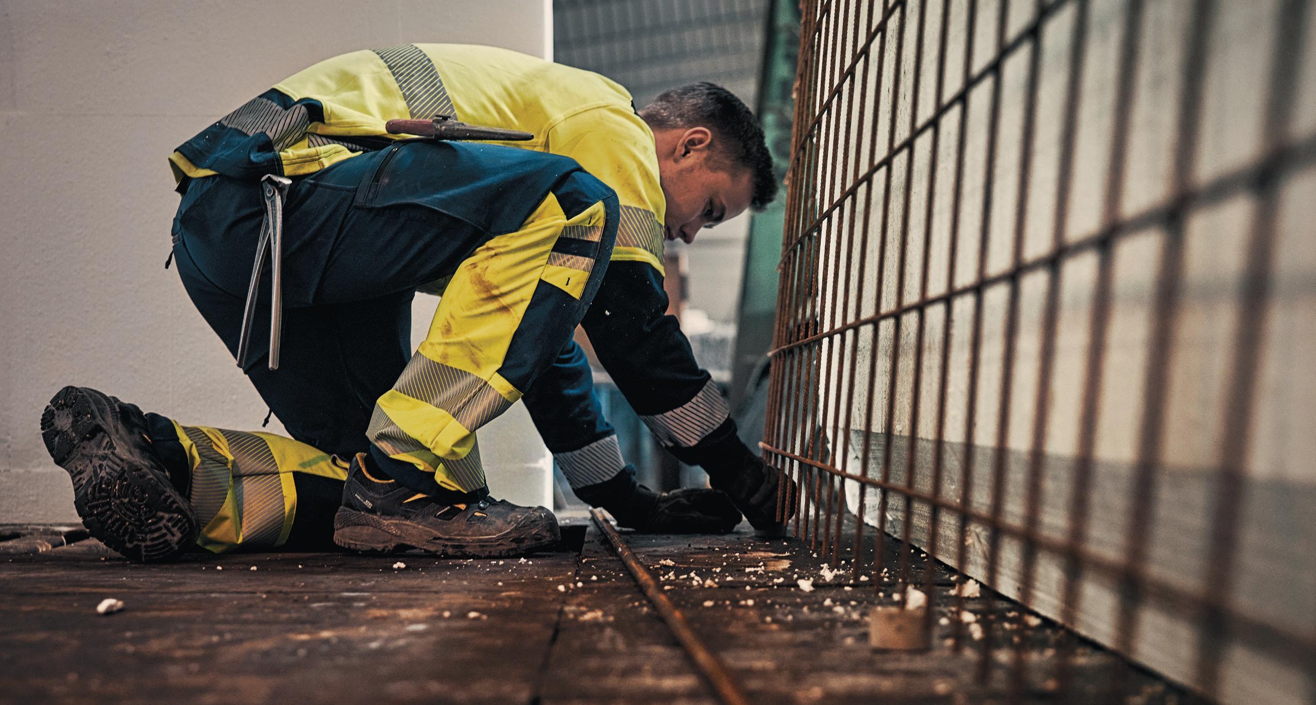 Die Beschäftigten in der Baubranche legen häufig viele Kilometer auf unebenem Boden zurück. Daher sind bequeme und robuste Sicherheitsschuhe zum Schutz vor Ermüdung des Bewegungsapparates sowie vor äußeren Einflüssen unerlässlich.