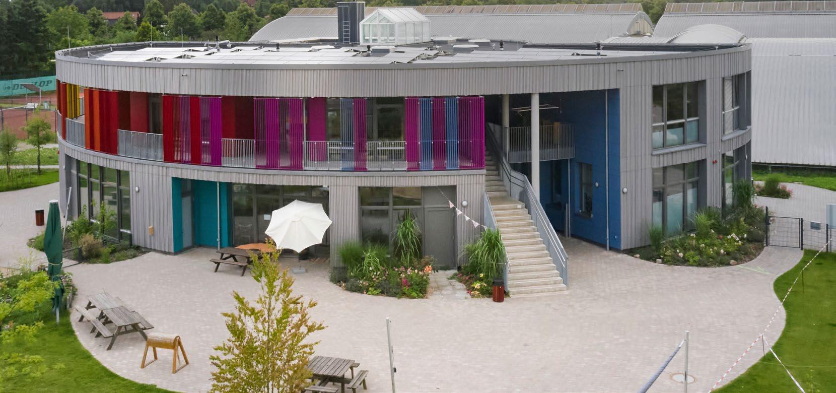Farbenfrohe und brandsichere Fassadenplatten für Sport-Kita