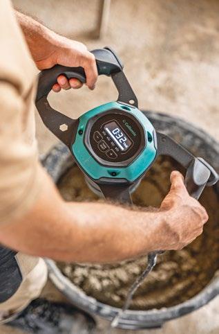 Während des gesamten Mischvorgangs überwacht die Maschine die eingestellte Drehzahl elektronisch und hält diese selbst bei wechselnden Lasten konstant. Auf diese Weise kann ohne Drehzahlschwankungen durchzugsstark im Material gearbeitet werden. So gelingt eine optimale Vermischung von Mörteln, Klebern oder Spachtelmassen in eine geschmeidige Masse. Ein weiteres neues Feature ist ein digitaler Zeitmesser, der dem Profi die jeweils absolvierte Mischzeit anzeigt. So gewinnt er die Sicherheit, dass seine Mischungen auch bei Serien in gleichbleibender Qualität erfolgen.