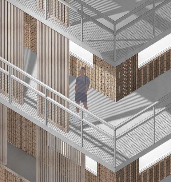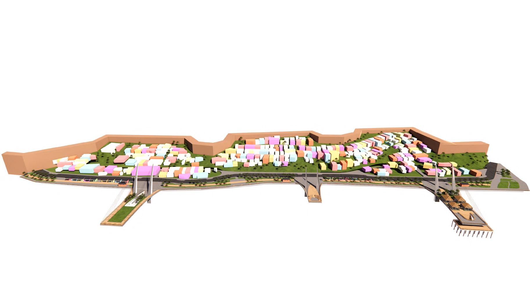 Our nal vision of La Perla involves many recreational spaces and nancial opportunities that will hopefully lead to creating a sustainable lifestyle for all current and new residents. The boardwalk includes three independent piers that will act out di erent functions, thus allowing the intervention in many ways to attract visitors. With our Boardwalk Intervention, we’ve not only focused on the human scale but also aimed to enable local sea life to ourish with the incorporation of eco-friendly wall features that will allow for the restoration of coral and marine habitats.