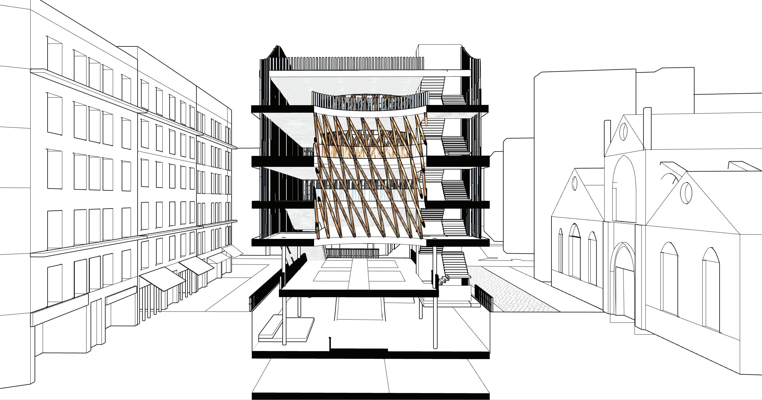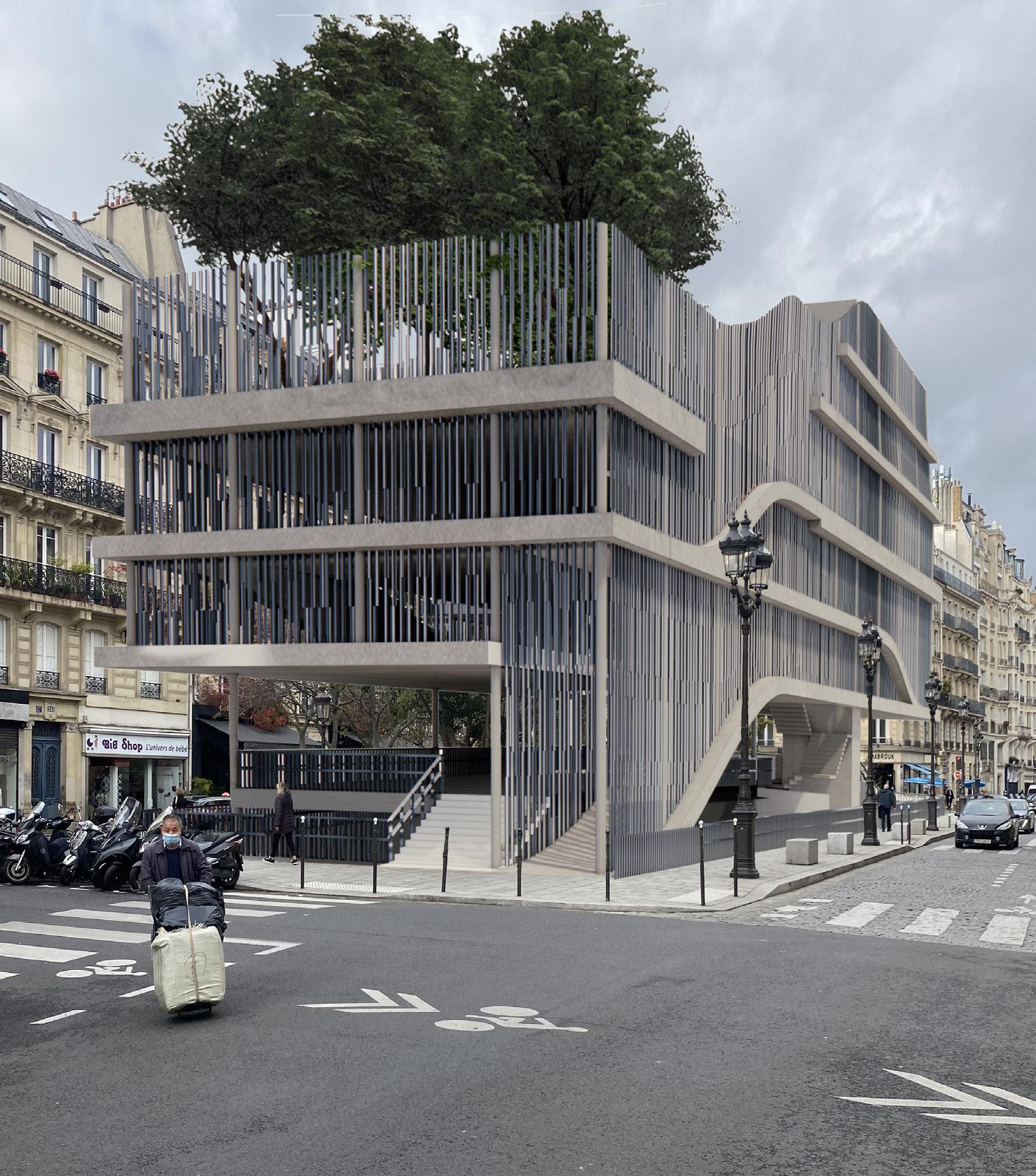 Inspired by the multiplicity of activities occurring within Parisian plazas, my attempt with LEVELS is to take an otherwise underused public plaza and create an inviting space for an array of users within the neighborhood. The idea was to take the concept of a plaza, lift it up off the street and spread its program across multiple levels. While covered, the spaces within are exposed to the environmental conditions to allow the occupants to immerse themselves within the surroundings.