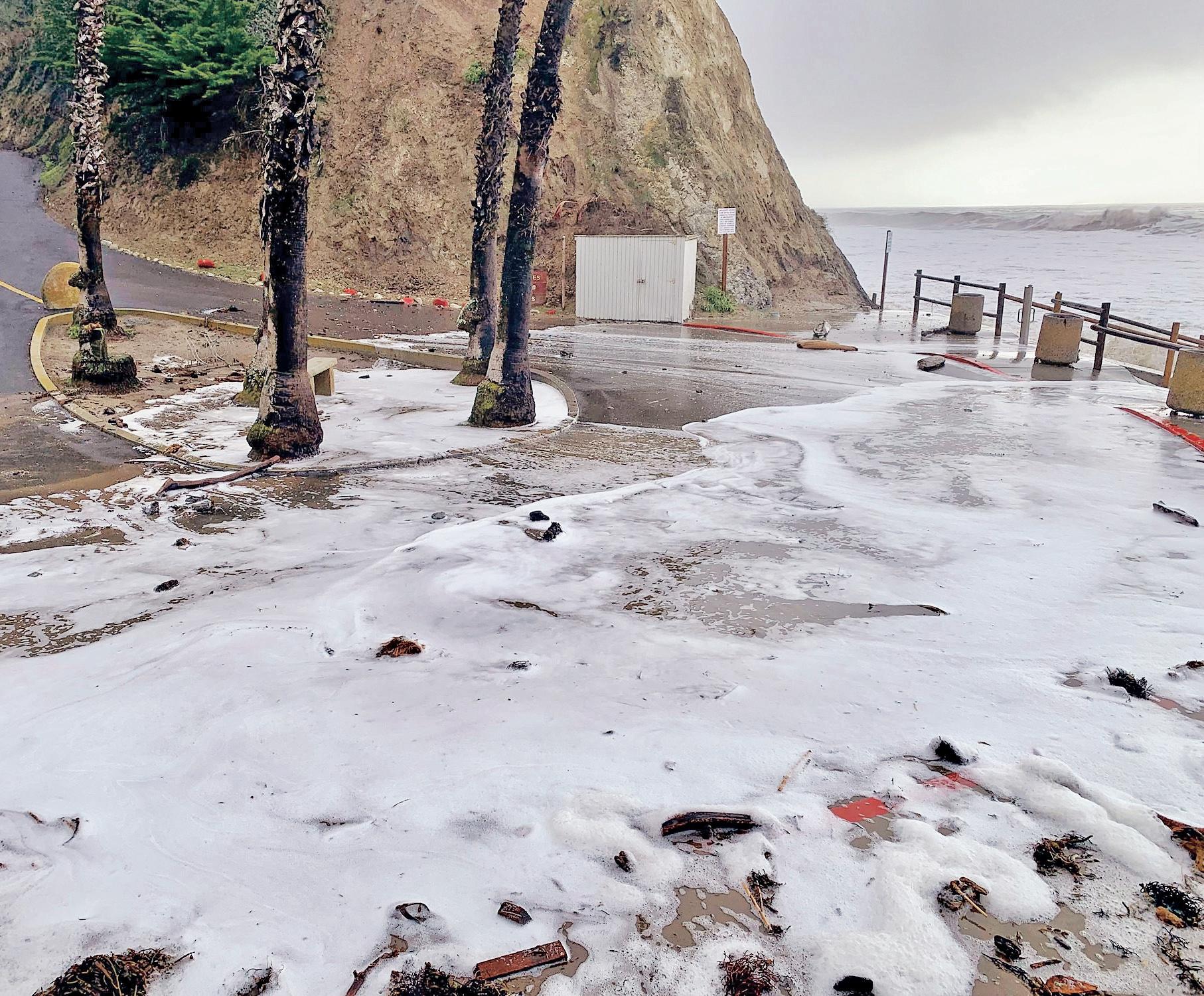 High waves crash Thursday into Goleta Pier and Goleta Beach following Wednesday night’s rainfall.