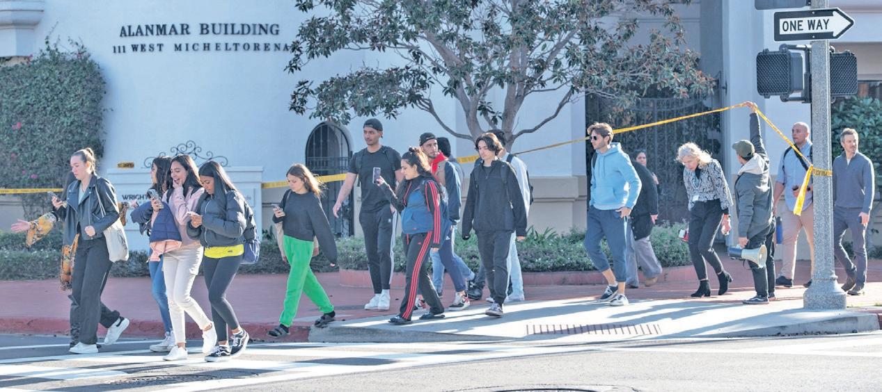 Students of EF International Language Campus are escorted to Alameda Park by their faculty and Santa Barbara police officers after evacuating their campus in downtown Santa Barbara due to a bomb threat on Thursday. The threat proved to be false.