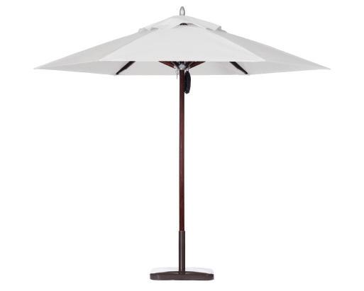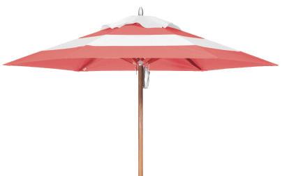 Montecito Wood is offered in premium teak, and budget-minded oak and mahogany. Solid aluminum hubs, finials and arm connectors are standard on every Montecito umbrella. Choose a market cut canopy, or add an optional valance.