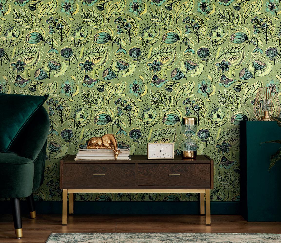 Moody botanicals – that’s an interior trend to look out for this winter. They bring a darker, more dramatic twist to traditional floral styling, combining lush greenery and botanical motifs with rich, atmospheric hues. Think deep emerald green, inky blue, and shadowy plum combined with dark wood, velvet upholstery, and antique-inspired accents.