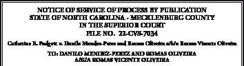 STATE OF NORTH CAROLINA COUNTY OF UNION IN THE GENERAL COURT OF JUSTICE SUPERIOR COURT DIVISION BEFORE THE CLERK FILE #2022 E 001266