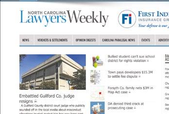 WWW. NCLAWYERSWEEKLY.COM NCLAWYERSWEEKLY North Carolina Lawyers Weekly [ISSN10411747] [USPS 002-904] is published Monthly with General Statewide