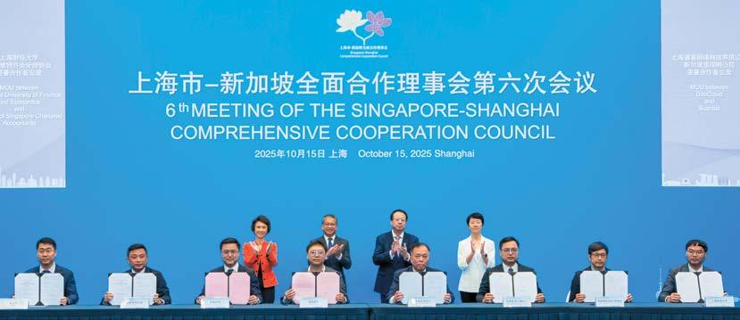 As Singapore and China commemorated the 35th anniversary of diplomatic relations in 2025, SCCCI organised five business missions to China, covering cities and regions including Beijing, Gansu, Shanghai and Nanjing. The Chamber also organised major events such as the “2025 Conference on International Industrial Cooperation” and held the “Singapore-China Business Forum” in Shanghai to mark the 15th anniversary of the SCCCI Shanghai Representative Office. These initiatives further deepened mutual trust between the business communities of both countries and promoted substantive cooperation. Throughout the year, SCCCI received 43 Chinese delegations in Singapore. SCCCI also welcomed graduate students from the Lee Kuan Yew School of Public Policy to the SCCCI Building and delivered a guest lecture on SCCCI Chinese Entrepreneurial Spirit and Chamber’s contributions to Singapore-China relations.