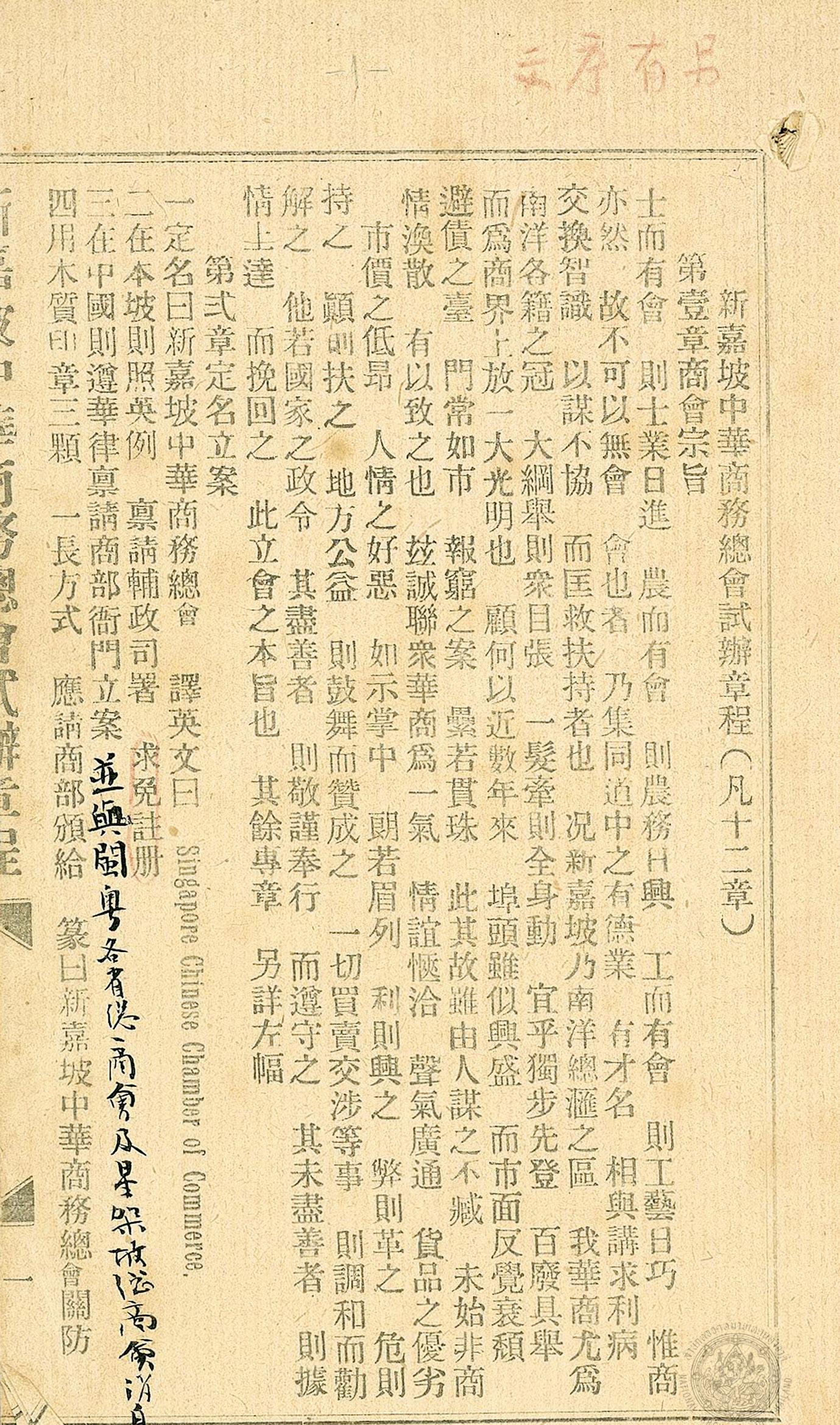 务。1906年成立的“新加坡中华商务总会”