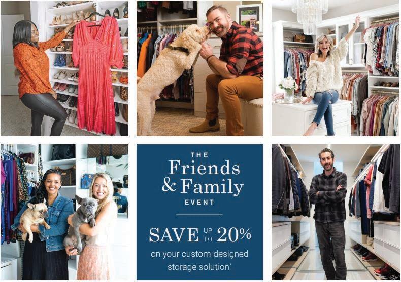 For a limited time, take advantage of up to 20% off* custom-designed solutions, and a free virtual or in-home design consultation. Whether a walk-in closet, home office, pantry or all three we’ll help you make any and every room in your home work for you. Request a complimentary in-home or virtual design consultation at californiaclosets com, or by contacting your local showroom.