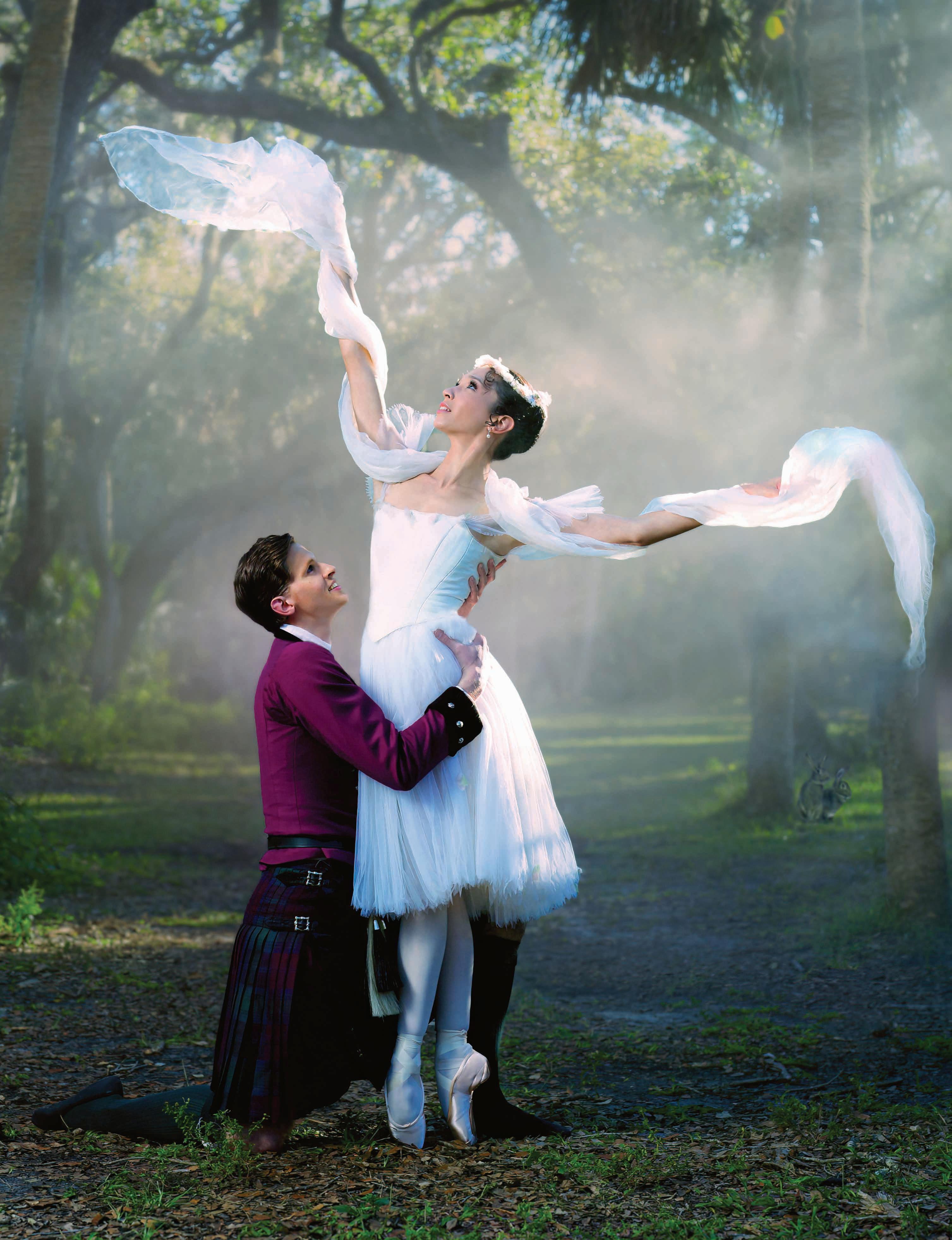 Macarena Gimenez (The Sylph) and Luke Schaufuss (James) in The Sarasota Ballet’s production of Johan Kobborg’s La Sylphide. Photo by Nancy Guth. Photo Assist: Jordan Kelly-Laviolette.