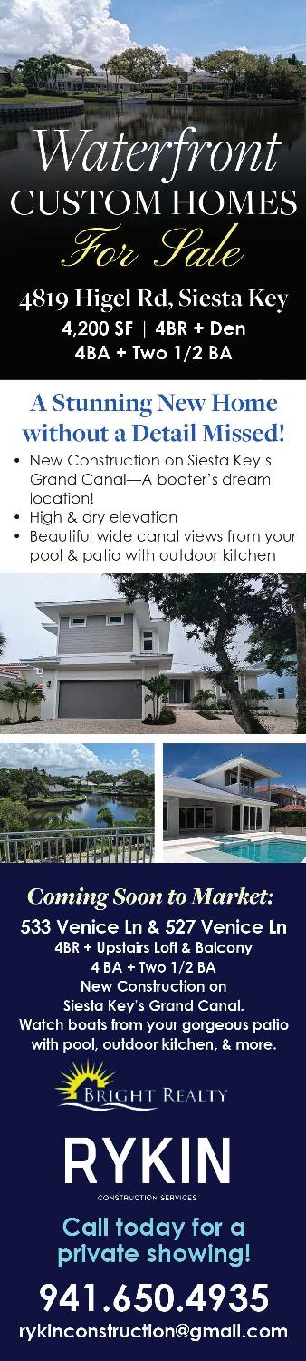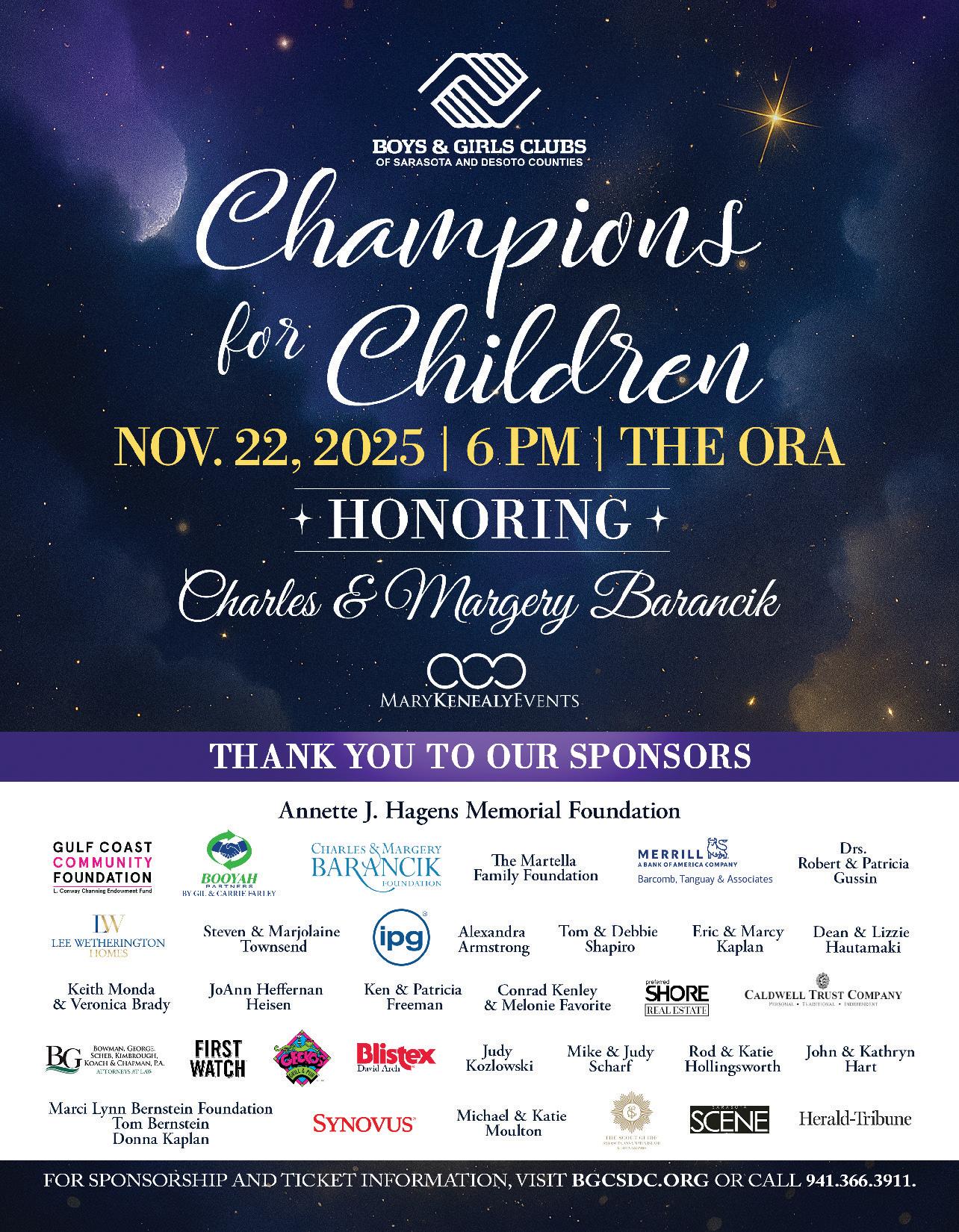 If you love putting on your finery as much as I do, you’ll want to peruse our ‘Tis the Season gala calendar in this issue. Please go through them all, learn about the cause, and buy your tickets early. Speaking from experience, while every gala is well done and special, I do have some favorites, but I’m not telling! Also, if you’re new to town, please be sure to say hello if you see me at an event. I would love to meet you and learn about your journey to Sarasota.