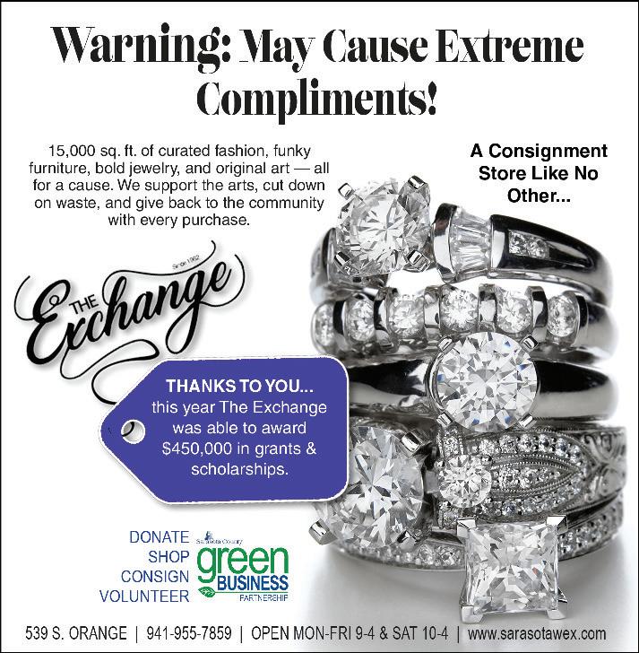 And ladies, for that special night on the town, Foxy Lady has been Sarasota’s “go to” boutique for fabulous fashion for many years. I hope you enjoy some of the evening fashion we showcase in this issue which may be just what you are looking for to shine at a special gala.