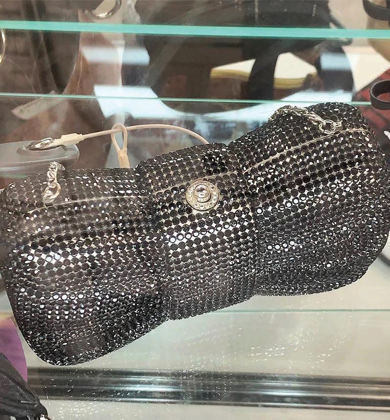 This black-crystal studded beauty is ready to party! Featuring silver hardware, an adorable bow shape and sparkles for days! Carry it on your shoulder, or tuck the chain inside if you prefer a clutch style bag. The Exchange $49 | shop.sarasotawex.com