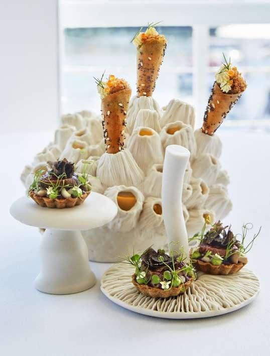 hues and plenty of natural wood to lend a warm touch to the space. With a minimalist aesthetic, the focus is all on the food and the sights, sounds and smells of the ocean. The food from head chef John Norris-Rogers, previously of La Petite Colombe, is what you’d expect – clean, consistent, identifiable and often really fun. His 11-course tasting menu takes inspiration from the range of cultures and cuisine that the La Colombe Group celebrates, with seasonal dishes influenced by the flavours and techniques that have passed through the group’s kitchens over the years. However, even La Colombe devotees will discover new things at this location.