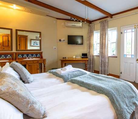 For a trip to Stellenbosch, the second oldest town in South Africa, Evergreen Manor & Spa has it all. In the heart of the quaint town – it’s a stone’s throw from the bustle of downtown Stellenbosch and you’re spoilt for restaurant and sidewalk café options – check. Surrounded by whitewashed Cape Dutch-style houses lining the narrow, oak-shaded streets – check. Beautiful, comfortable, functional bedrooms – they’re equipped with antique furniture, huge beds, Victorian-style bathrooms and thick brocade curtains that block the morning sun – check. The only thing this haven doesn’t have is the Winelands’ surplus of crowds. To stay at Evergreen Manor & Spa, a member of Cape Country Routes, is to step back in time. The small and intimate hotel has every element of an elegant country house – interiors effortlessly blend the spirit of history with modern touches – but manages to never feel stuffy or unapproachable. One of the most spectacular features of the hotel are the quiet gardens. They’re especially beautiful in autumn, when the air is crisper and the trees are turning brilliant shades of bright yellow, orange and red. All rooms – where you’ll experience the sleep of the pure – are easy to navigate and are decorated in the same country-chic style as the common spaces, with upholstered cushy armchairs and the deepest of bathtubs. There’s complimentary plunger coffee and rooibos tea on offer in all rooms, while a full English breakfast that offers fruits, pastries and more is included. Walk out of the front gates and you’ll find yourself on the postcard-pretty streets. For dinner, you can stroll into nearby restaurants that surround the hotel (like The Fat Butcher or Eike by Bertus Basson) or drive a bit farther afield to wine estates with award-winning restaurants. A handful of friendly staff are on hand to provide swift assistance around the clock. And while you’ll certainly be taken care of, you won’t be bothered, which is refreshing.