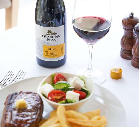 The Stellenbosch Wine Route is jam-packed with delicious places to eat, but even to jaded frequent visitors, Guardian Peak Winery & Grill remains a complete happy surprise. This is quietly one of the best restaurants in the area – and proof that not all great cooking happens in a hushed room with linen tablecloths and waiters in waistcoats. Tucked into the hills below the imposing Helderberg Mountain, the restaurant provides spectacular views of the vineyards and surrounding mountains to go with lunch on the terrace. Floor-to-ceiling windows further enhance the view. But the main event here is the food, of course. Steak is a specialty, but we suggest kicking off with tasty little morsels of quick-fried salt and pepper squid served with zingy lemon aioli. Strong flavours are everywhere, from chicken breast marinated in harissa paste to roasted aubergine with a warm chickpea and feta salad and tomato ragù. For lunch, we recommend the Chalmar beef fillet with garlic and herb butter, perfectly cooked on the grill and served with a green salad and chips. The Thai fish curry – tender, flaky white fish and seasonal veggies bathed in the most fragrant coconut curry sauce infused with lemongrass and lime –provides a startling gastronomic venture. Don’t skip on pudding either … dark chocolate fondant and hazelnut ice cream or Amarula panna cotta with caramel sauce and honeycomb are dishes we’d order again. Featuring Afrikaans, Cirrus, Donkiesbaai and Stellenbosch Reserve wines, the local wine list is excellent and, delightfully, so are prices. Once pudding is done, there are a series of cosy nooks to settle into with another bottle of our favourite Guardian Peak Sauvignon Blanc. On the nose, expect pungent aromas ranging from ripe tropical fruit to fresh gooseberry. On the palate, it’s light-bodied with racy acidity. The Stellenbosch Reserve Hangbrug Chenin Blanc is a touch sweeter than expected, but stands up beautifully to the bold flavours of the food.