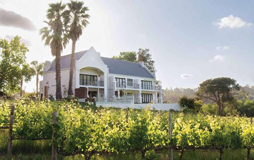 The verdant valleys and rolling vineyards make Rust en Vrede Wine Estate a paradise worth exploring. Throw in vistas filled with a vast green lawn surrounded by soft shell-pink, sky blue and pale mauve-lilac hydrangeas, and you have yourself one seriously photogenic destination. As summer rolls out its sunniest days, there’s nowhere better to be. At Rust en Vrede Restaurant, a wine and culinary gem open for dinner only from Tuesday to Saturday, head chef Fabio Daniel has made a name for himself with his approachable cooking style and sixcourse tasting menu. Arrive at sunset for a well-chilled glass of Perrier-Jouët champagne on the front porch that’s seemingly built on a foundation of flowers. Then, wander up to the glamorous restaurant to dine on dishes that are expertly executed, but not in the least bit pretentious. Including the amuse-bouche, bread course and tempting treats to pair with after-dinner coffee, you’ll be eating nine manageable courses that change seasonally, with some variations for vegetarians, pescatarians or food allergies. The main themes of the menu here are light, raw seafood and heartier meat dishes: Fish of the day prepared tataki style is served with radish and silky-smooth whipped avocado, while perfectly pink local beef is paired with cassava and nutty, purple-tinged artichokes. Peas and