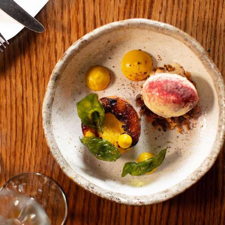Starting with a few appetisers, you’d be remiss to overlook chef Katlego’s rightly famous Thai oysters with nam jim dressing – they’re a great way to get a dinner started! Follow with the mildly spiced fish tacos – their featherlight, crisp shell loaded with pickled ginger, jalapeños, avocado, passion fruit and perfectly seasoned plump fish – and the deep-fried chicken thigh sliders; steamed idombolo buns topped with Asian slaw and pickled red onion, which have a comfort-food feel. The accompanying sweet and slightly crunchy ‘African Carrot 3.0’ – ras el hanout and duck fatroasted carrot, carrot purée, fermented apple and pickled pineapple – is a perfectly contrasting pairing. Thin-sliced sashimi with tamarind, coconut and pickled jalapeños as well as melt-in-your-mouth wagyu steak with truffle potato ‘noodles’, sous vide egg yolk and D’USSÉ VSOP Cognac bone marrow jus are just as easily a highlight for the evening. A sweet-but-pleasantly-light take on a peaches and cream dessert rounds out the meal nicely.
