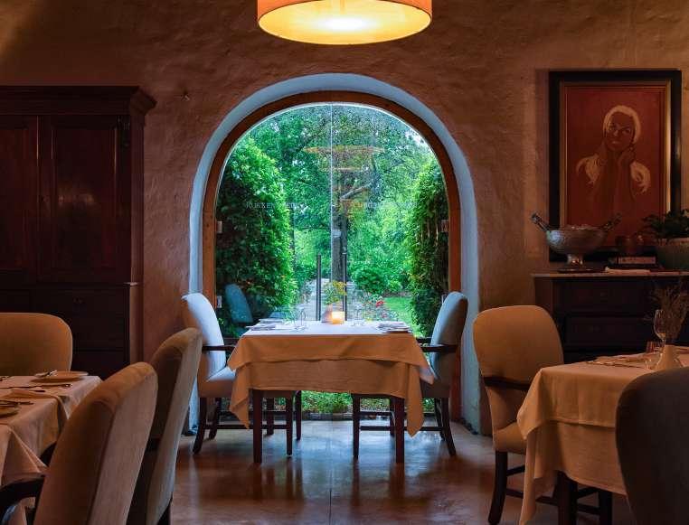 bacon complement a standout dish of deep-fried, sunshine-yellow sous vide egg yolk. Desserts, far from an afterthought, highlight chocolate and remarkable local fruit. The artfully arranged ‘Snow White’ dessert –with white chocolate, raspberry and litchi – looks like a little sculpture and tastes like heaven. The service, which runs like a well-oiled machine, is as excellent as the food. Servers are warm, discreet, efficient and well-versed in the menu and wine-pairing option. One thing’s for sure – a meal at Rust en Vrede Restaurant isn’t easily forgotten. We recommend booking a few weeks ahead to avoid disappointment.