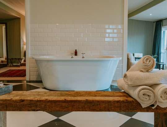 In the heart of elephant country, tucked away on the Zuurberg Pass, Camp Figtree is outdoor luxury at its best. The levels of friendly and functional service are hard to find elsewhere in Addo, if not the Eastern Cape. Activities, both on and off-site, are equally impressive – choose from bush walks, bush picnics, giraffe walking safaris as well as game drives into Addo Elephant National Park and Schotia Safaris Private Game Reserve. The individual residences built into the mountain, ranging from Superior Suites to Luxury Tents and The Outpost (half suit, half tent), are certainly impressive and generously sized. With panoramic views over the Zuurberg Mountains, it all feels elemental and ethereal. Our high-ceilinged Luxury Suite was a staggering 180m2 and filled with enough clever storage to keep a week’s worth of packing out of sight. Cool, creamy and contemporary in aesthetic, with lovely touches such as mint-green walls, plush carpets, a colonial four-poster bed, linen bedding, a sectioned seating area, a vast outdoor area and swathes of heavy curtaining that allow you to sleep in. It’s easy to lose all sense of time in this level of comfort. The bathroom, furnished with greenery, was equipped with a sizable bath and a very good rainfall shower. Locally produced Healing Earth toiletries were a charming touch. Head chef Marshall Petla oversees the