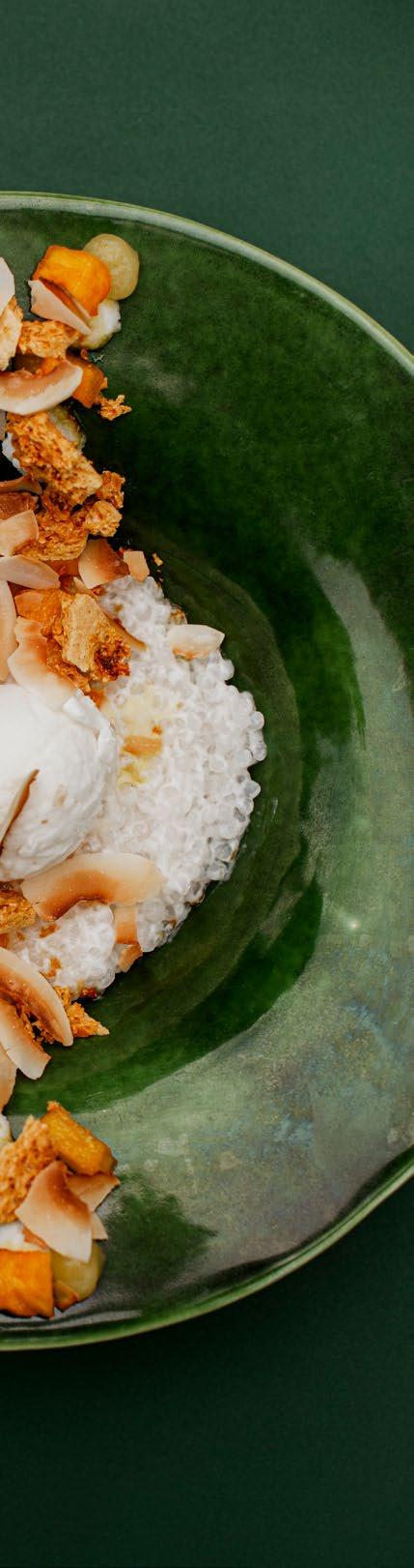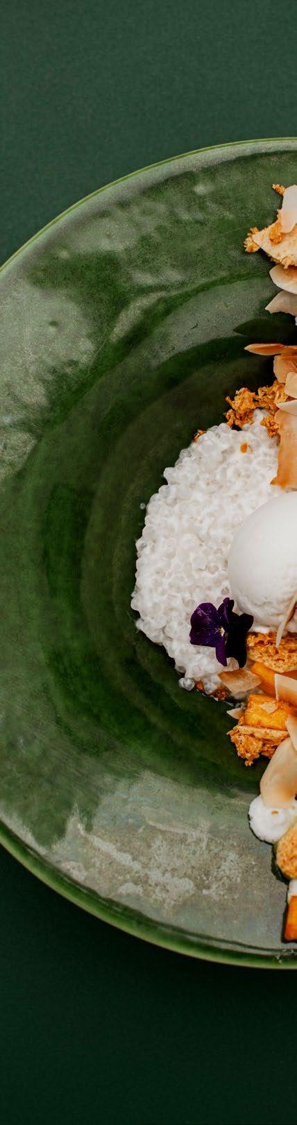 the walls. Across the menu, there’s renewed emphasis on less being more, resulting in clarity and elegance. Like freshly shucked oysters dressed with Cape rough lemon and glossy trout caviar, or coal-grilled crayfish tails with a lemon and garlic butter that allows the sweet, succulent flesh to shine through. The flavours work beautifully with the full-bodied La Motte Chardonnay. Charry Karoo lamb tails well matched with spinach and apricots put South African meat on a pedestal, as does a rib-eye steak boosted by accompaniments that range from bone marrow bordelaise to nuggets of salt-roasted Sandveld potatoes. The Leipoldt’s milk tart ice cream dusted with cinnamon is also a real stunner. Its smooth texture makes it the perfect companion to a biscuit base, almond mousse, apricots and coconut. Add a broadly appealing wine list and new outdoor seating, and you’ve got an experience that’s more enjoyable than ever. Gold stars all around.