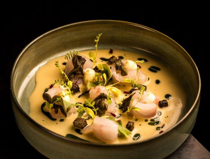 COY could easily rest on its laurels, using its idyllic V&A Waterfront location to draw a crowd. Good thing it doesn’t. Here, owner-chef Ryan Cole of Salsify at the Roundhouse interweaves inventive, interesting eating with native South African ingredients. Seafood is the fitting star, which sits well among the impressive yachts and seal-filled water. With views that encompass both Table Mountain and Signal Hill, COY holds prime real estate. It expertly straddles the line of cool and sophisticated, with a predominately black interior accented with black-and-white prints, lookat-me textures, polished concrete floors, and simple but striking furniture and art. But it’s what happens on the plate here that you’ll remember beyond any aesthetics. COY’s seven-course tasting menu explores anything from linefish sashimi swimming in a dashi broth with caramelised coconut and sugarcane to lamb served on a bed of pap with spinach, butternut, skopo jus and potjie. It’s pretty obvious that head