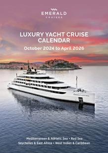 5 Your Luxury Yacht Experience Cruise with the luxury yacht experts 6-9 A floating boutique hotel 10-13 Aquatic fun 14-15 A culinary journey 16-17 Room with a view 18-21 Our wellness promise 22-23 The freedom to explore further 24-25 EmeraldDISCOVERY program 26-27 EmeraldPLUS program 28-29 EmeraldACTIVE program 30-31 Luxury yacht cruise calendar 32-37 Epic voyages calendar 38-41 The Mediterranean & Adriatic Sea 42-77 Seychelles & East Africa 78-85 Red Sea & Suez Canal 86-93 Caribbean & West Indies 94-101 Cherish the planet 102-103 Booking conditions 104-107 Contemporary staterooms & suites 108-113 Cabin & Deck Plans 114-115