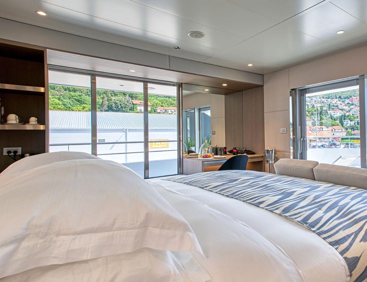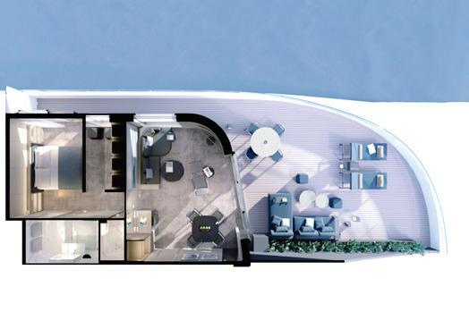 Our oversized Owner’s Suites are the largest and most opulent, located on the Pool Deck. Boasting a separate bedroom and lounge area, you’ll also enjoy your large private terrace, from which to admire the stunning views of each port you visit.