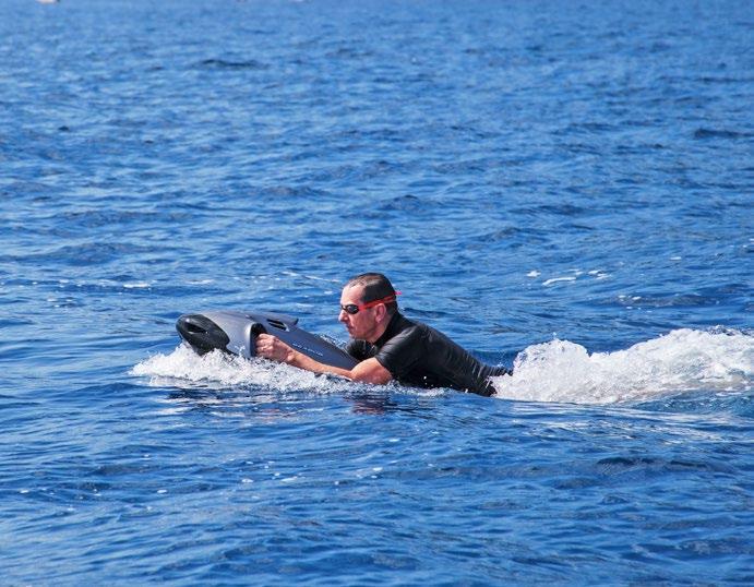 Explore the ocean at thrilling speed with a water scooter. You can choose to glide, scoot around at a higher speed or dive underwater.