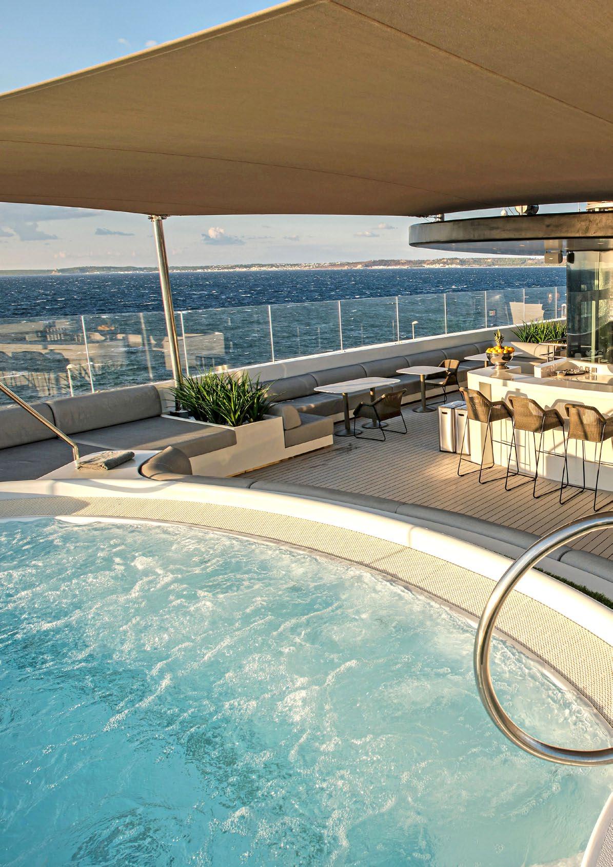 Head to the Sky Bar on the Sky Deck to relax in the Spa Pool as you enjoy the glorious Mediterranean sun, delicious drink in hand.
