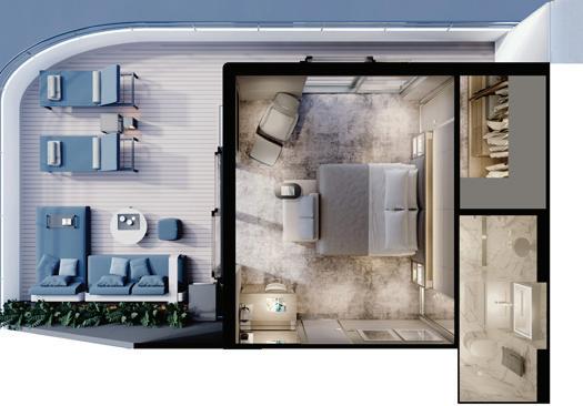 ■ Suite size: 65m2 – 67m² (includes outside terrace)