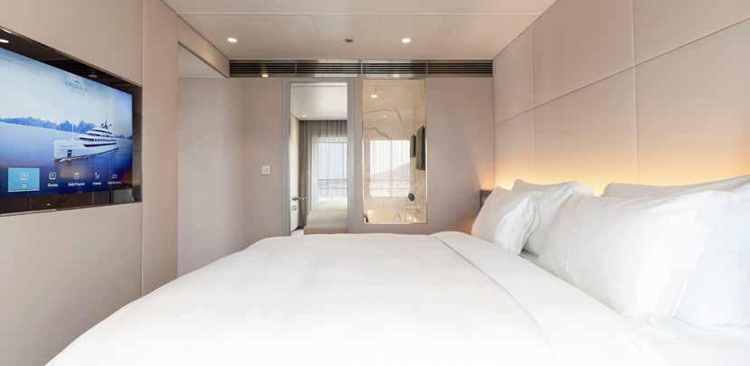 With intimate service and space for just 100 guests on board, Emerald Cruises’ luxury yachts truly embrace the small-ship experience. Reaching an impressive 110 metres in length, there is an abundance of space on board just waiting to be explored. Our luxury yachts bring a taste of bohemia to the oceans, surrounding guests with contemporary design elements such as Paola Lenti day loungers around the infinity-style Aqua Pool and Kettal deck chairs by the Sky Bar. Guests are treated to Missoni towels and robes throughout the yacht, and ESPA beauty products can be found in all suites and staterooms.