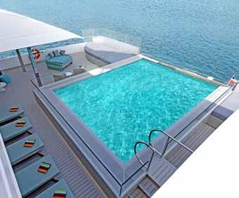 At the aft of the yacht on the Pool Deck, take a leisurely dip in between light refreshments, with expansive views of the unfolding panoramas.