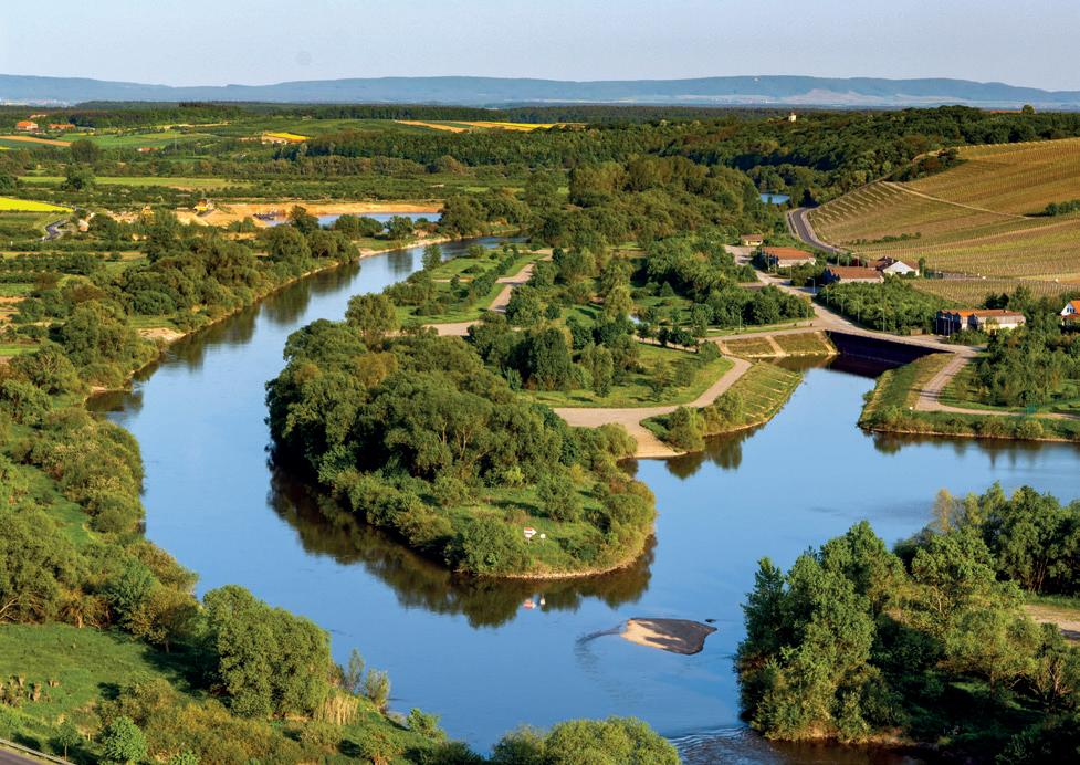 Springing from the low mountains of the Vosges, the Saône coalesces with the Rhône in the city of Lyon. Supporting trade and commerce since prehistoric times, the peaceful banks of the Saône are home to burgundy-roofed villages, sweeping meadows, and wind-shaped Poplar trees.