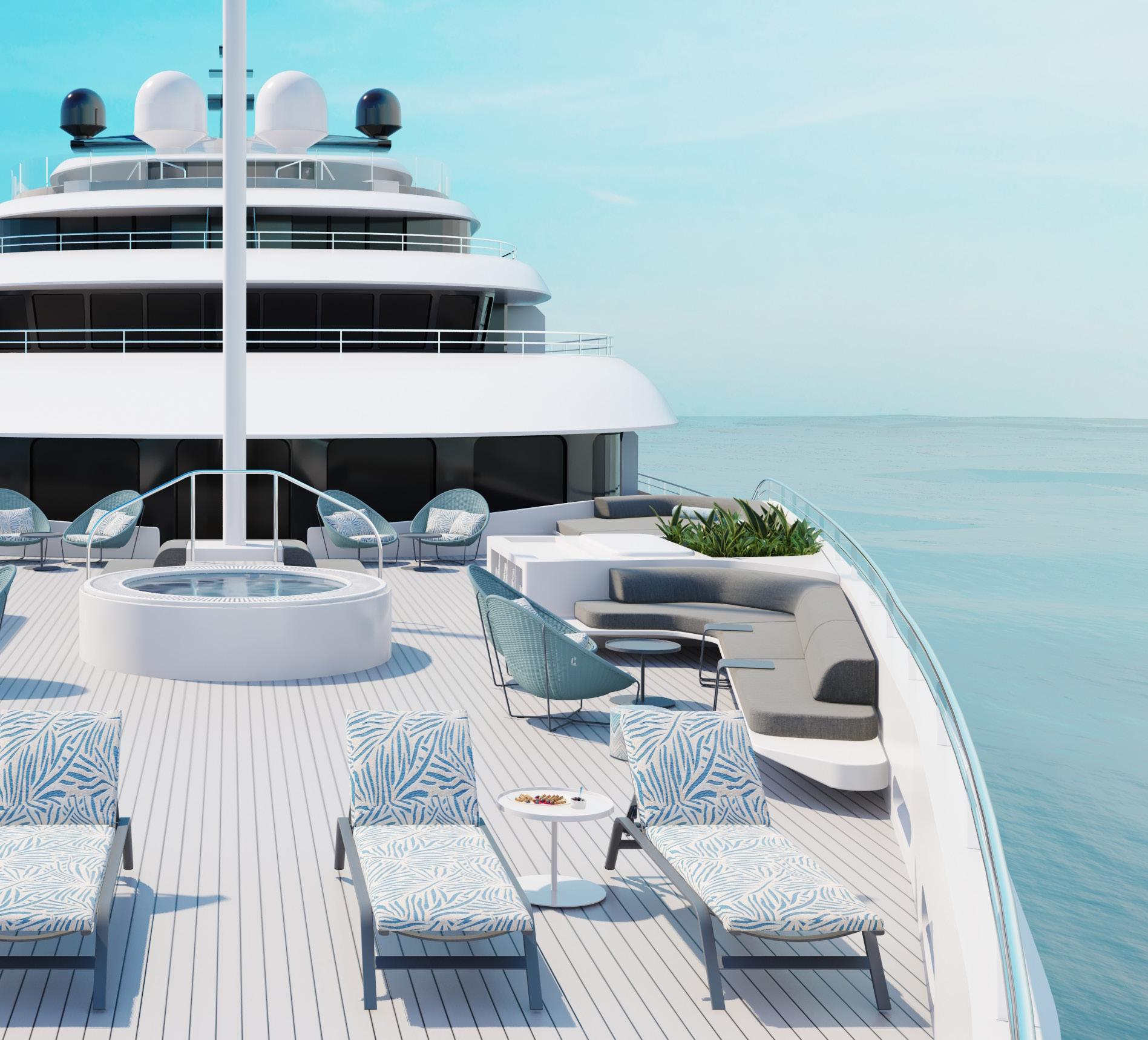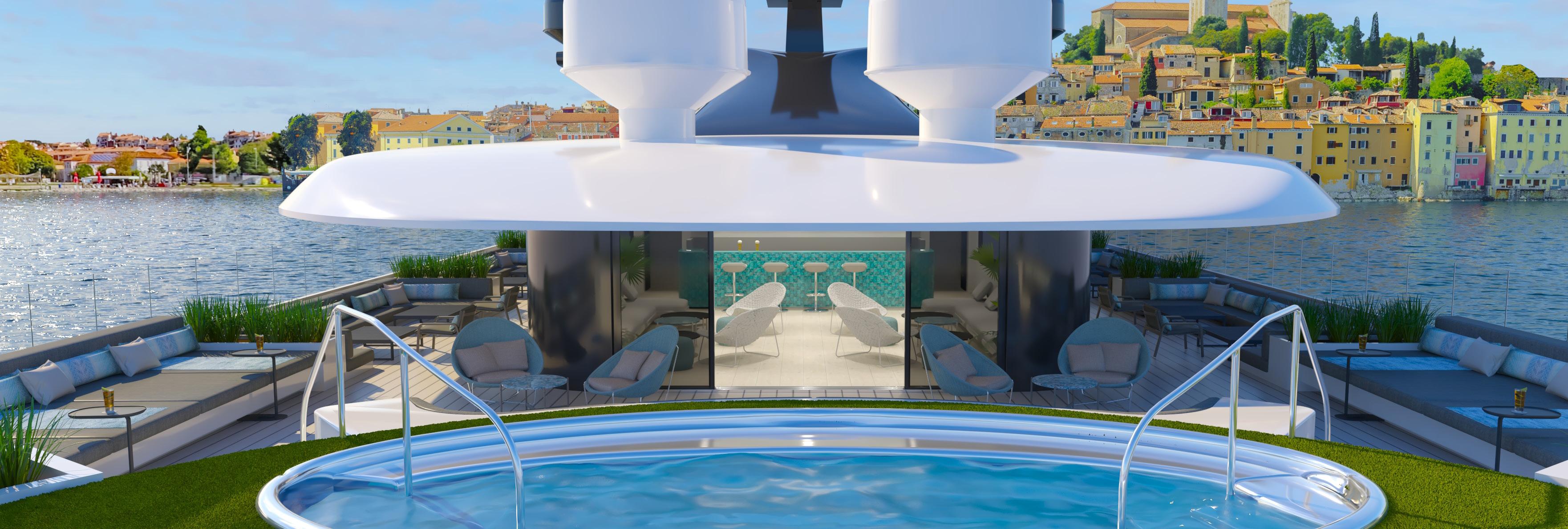 Emerald Kaia’s Observation Sun Deck also features a spa pool and outdoor lounges to enjoy the yachting lifestyle.