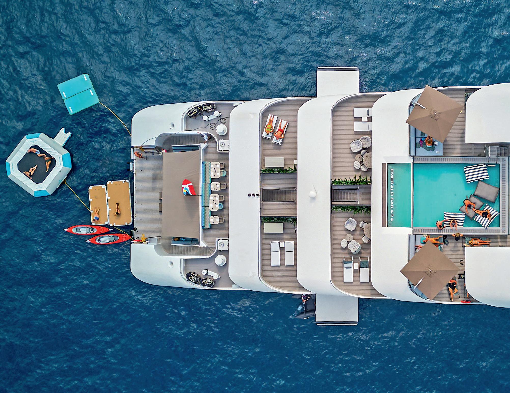 Make the most of the days at anchor, where warm water cruising truly comes into its own. All our yachts will impress with their marina toys and sense of fun but Emerald Kaia now includes a sleek Marina Lounge to relax and refresh after your marine adventures.