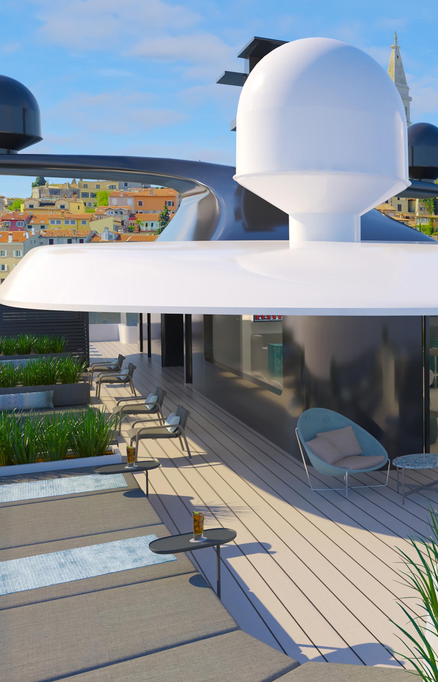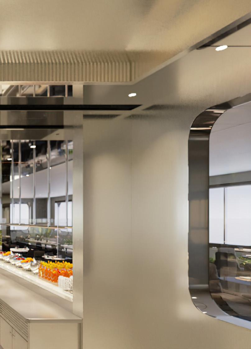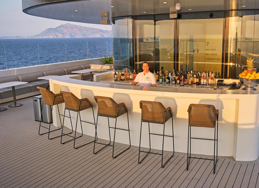 On the top deck, the Sky Bar & Lounge, with its new indoor/outdoor space, will serve your favourite cocktails and bar snacks, while the Aqua Pool & Cafe offers light meals, gelato and refreshments, to re-energise after your swim.