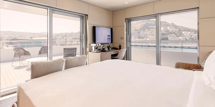 These spectacular suites showcase our revolutionary indoor balcony design. With the touch of a button, the upper part of the suite’s floor-to-ceiling window drops down to unveil uninterrupted views of the stunning scenery.