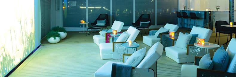 By day, enjoy a leisurely swim and panoramic views through the pool area’s floor-to-ceiling windows on three sides. Our cinema area can be reserved for groups, so if you’re looking for the perfect venue for a special occasion, we can help organize it for you.** In the evening, take in a movie as our state-of-the-art retractable roof encloses this space^ into an evening cinema.