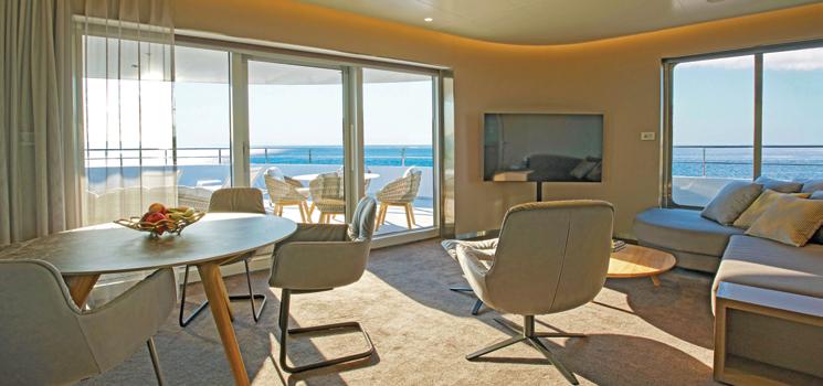 Take in unrivaled ocean views in comfort, looking out onto the horizon for marine life and approaching land*. Inside, luxuriate in stylish décor including Dedon MBrace Wing