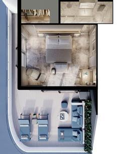 ■ Suite size: 646-667 sq. ft. (60-62 sq. m.) includes outside terrace