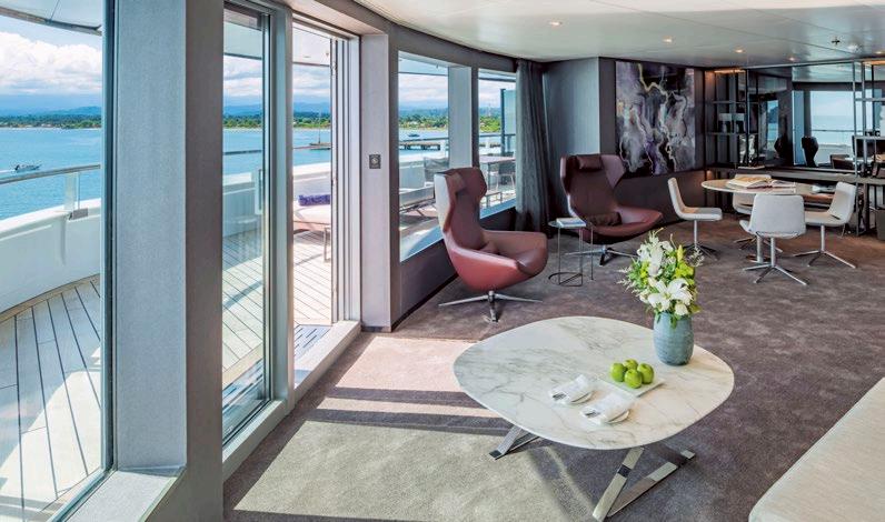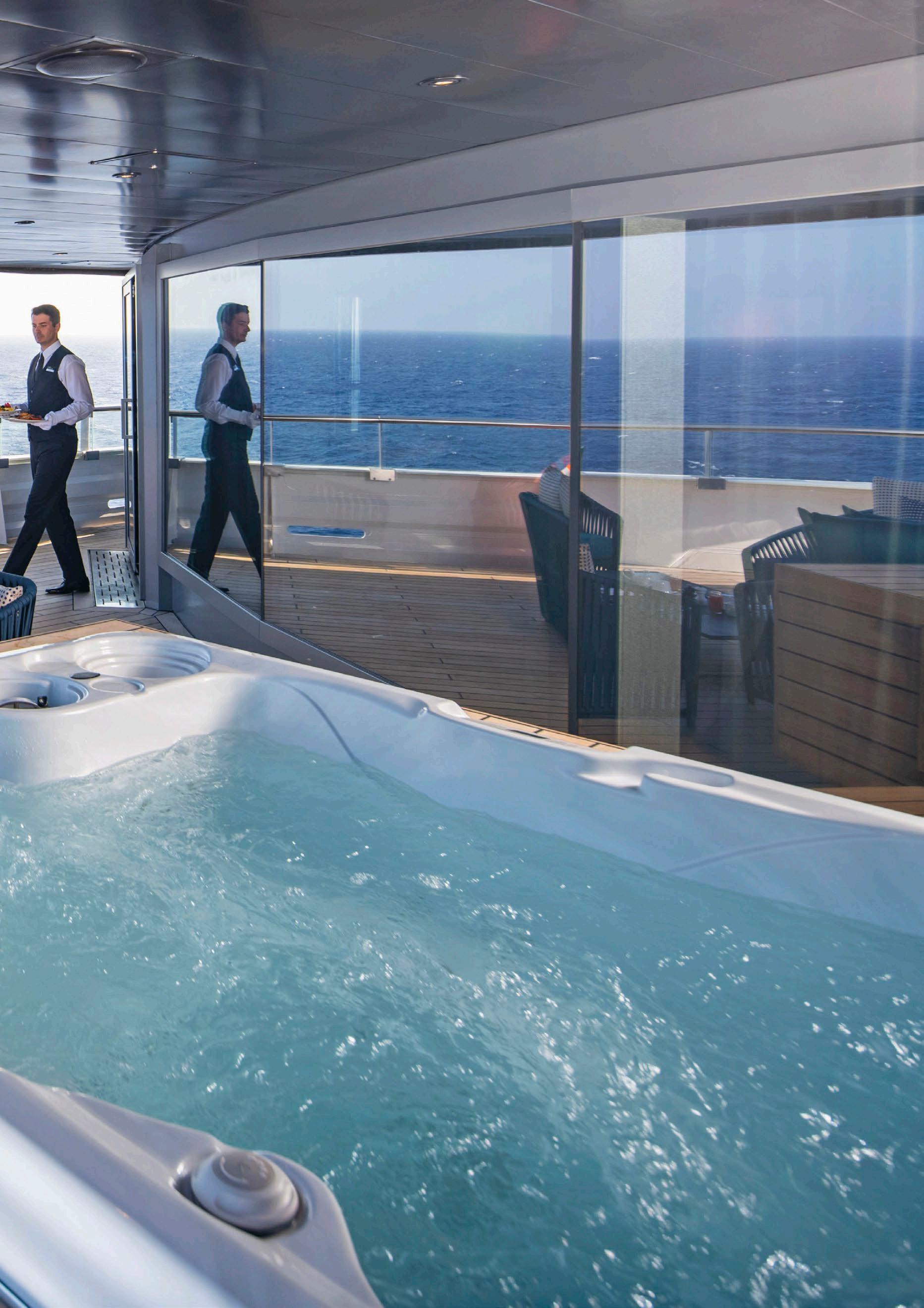 Watch the world go by from your private verandah suite in 6-star luxury. A dedicated Butler service is available to every guest, along with an almost 1:1 staff-to-guest ratio. The Comfort Class 1 notation, featuring the highest sound insulation and vibration as per the marine class society Bureau Vista spans throughout all public spaces and suites.