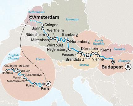 Explore Europe on this seamless journey that takes you from the rich history and traditions of Britain to a 15 day river cruise uncovering iconic landmarks and European culture along the Rhine, Main and Danube rivers.