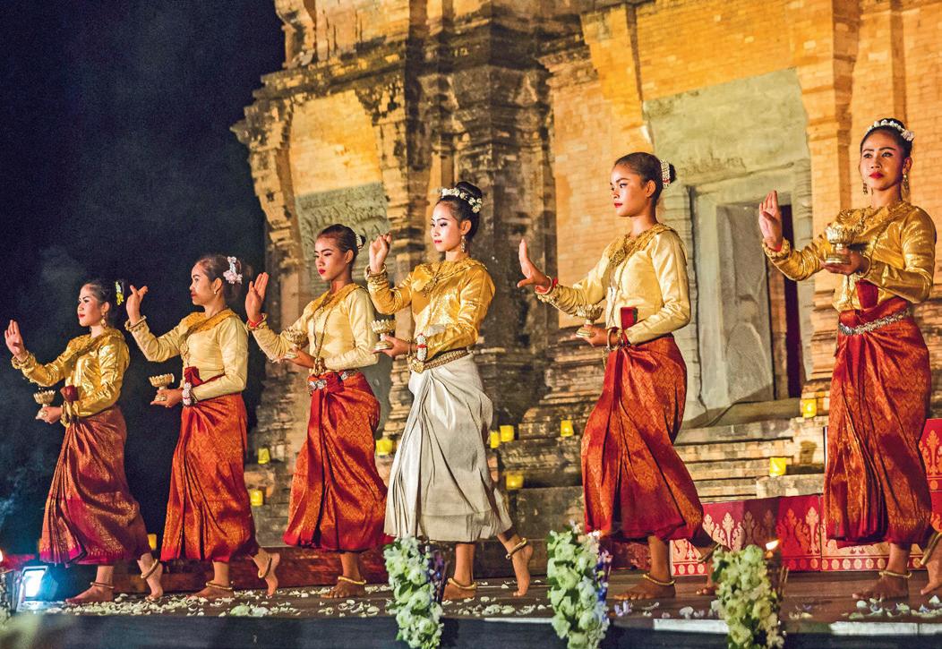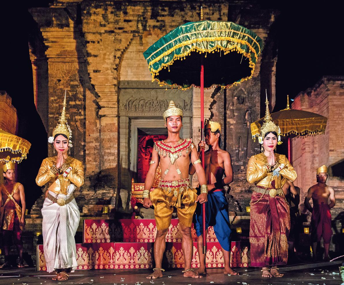 It’s everywhere: in the ancient, hand-carved bas-reliefs adorning the walls of Angkor Wat; in Buddhist shrines, pagodas and temples providing solace to locals for centuries; in the narrow laneways coloured with hanging paper lanterns and perfumed by the heady aroma of burning incense; in the music composed centuries ago that is still lovingly performed today; and in the movement of traditional dancers dressed in historic and colourful national costumes.