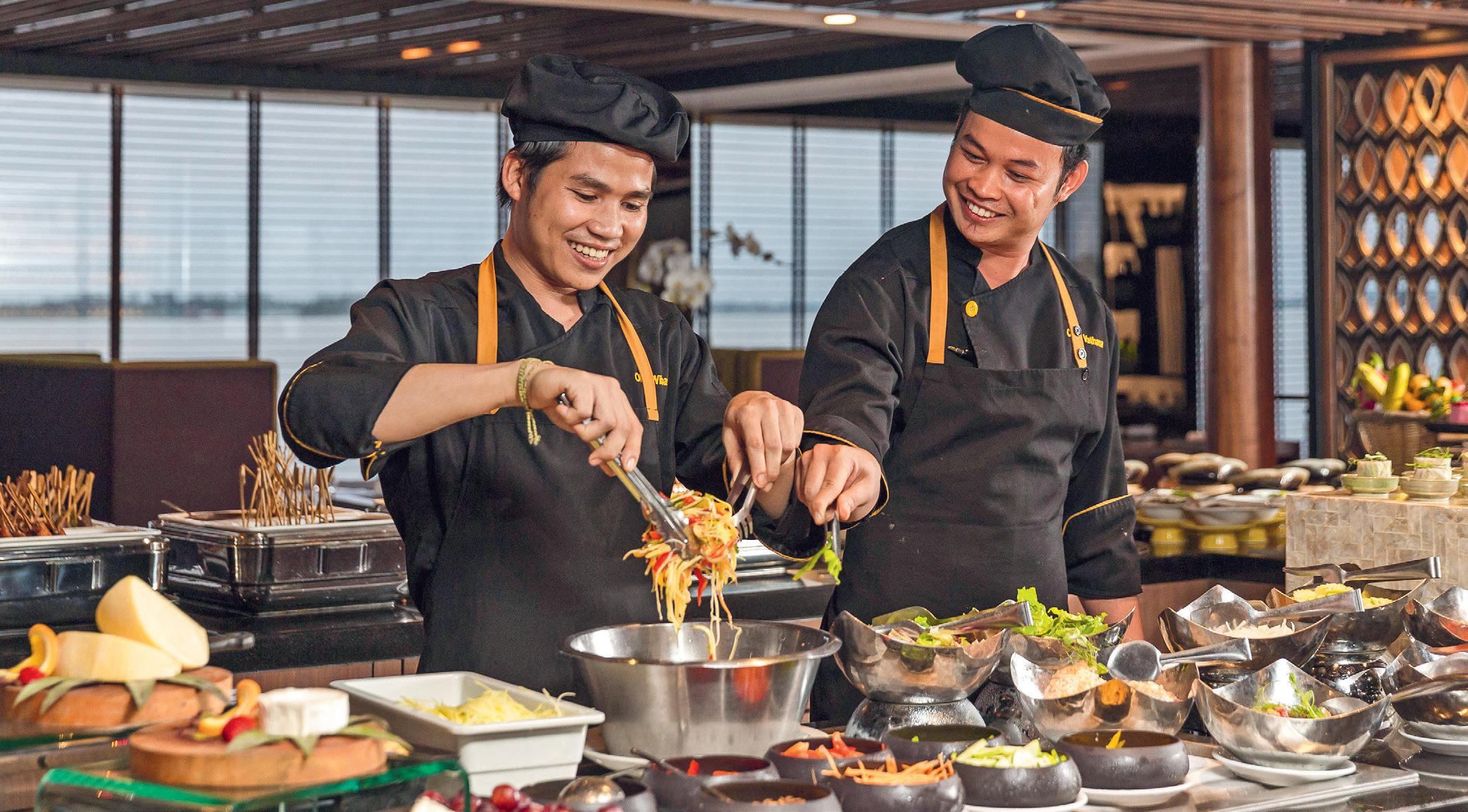 Savour fine dining or casual fare at a choice of on board venues; or dine in the privacy of your own suite. Our chefs draw flavoursome ingredients from our herb garden, tailoring dishes to include regional cuisine and Western favourites. The curious can try the exotic and unique as well as the flavours of tropical fruits at our juicing station.